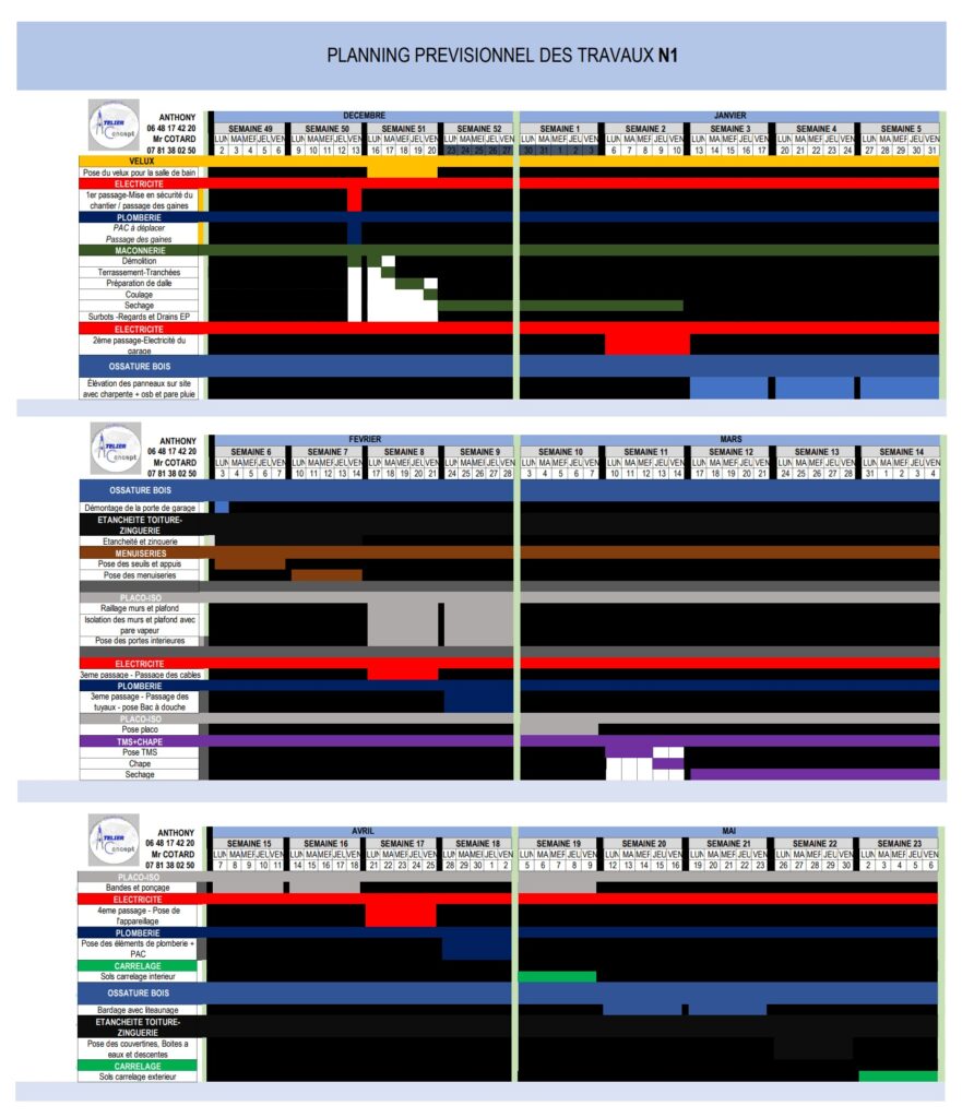 Toujours dans un souci de professionnalisme, je vous propose également un devis dédié au suivi complet du chantier.Suivi
